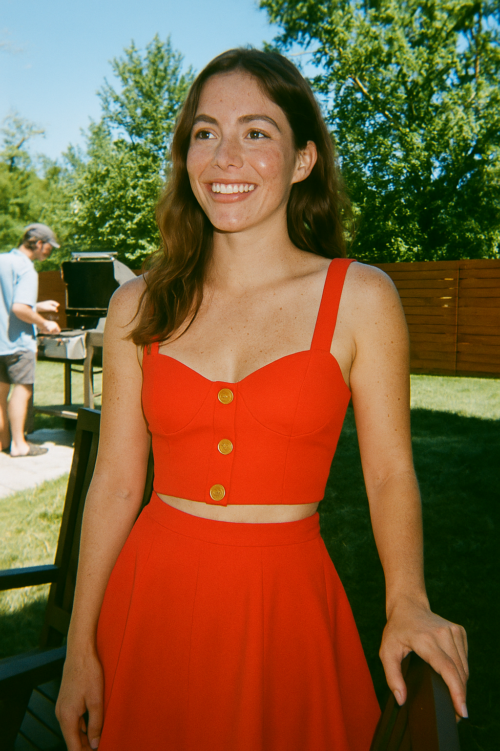 Make the grade with this upcycled duo. The cami top features wide straps and gold-button detailing for vintage glam. The pleated A-line skirt cinches at the waist and skims the hips. Wear together for an instant A look or mix and match with your capsule for class to cocktails. Perfect for versatile styling.